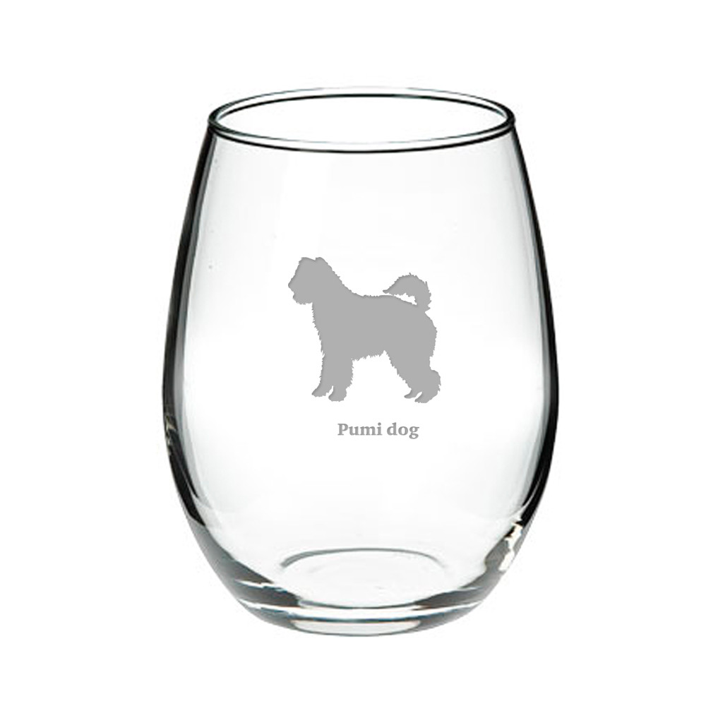 Pumi Dog Deep Etched Stemless Red Wine Glass