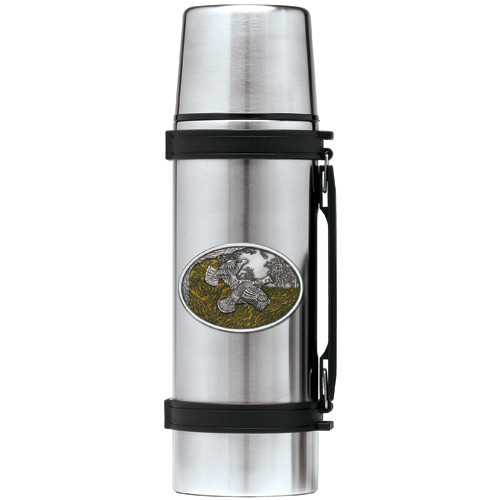 This 1 liter stainless steel thermos features a fine pewter casting. The details in this 3-d sculpted design are incredible! Made in USA.