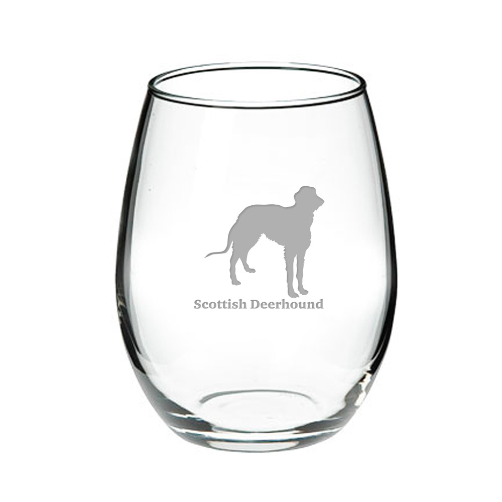 Scottish Deerhound Deep Etched Stemless Red Wine Glass