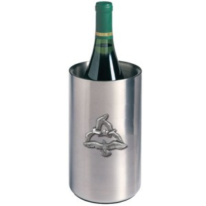 Made from high grade, lead free pewter this beautiful wine chiller is handcrafted embellished with a pewter logo of your favorite sports team of wildlife scene. This chiller will keep your wines cool while placed on the table. Makes an excellent gift and is crafted in the USA!