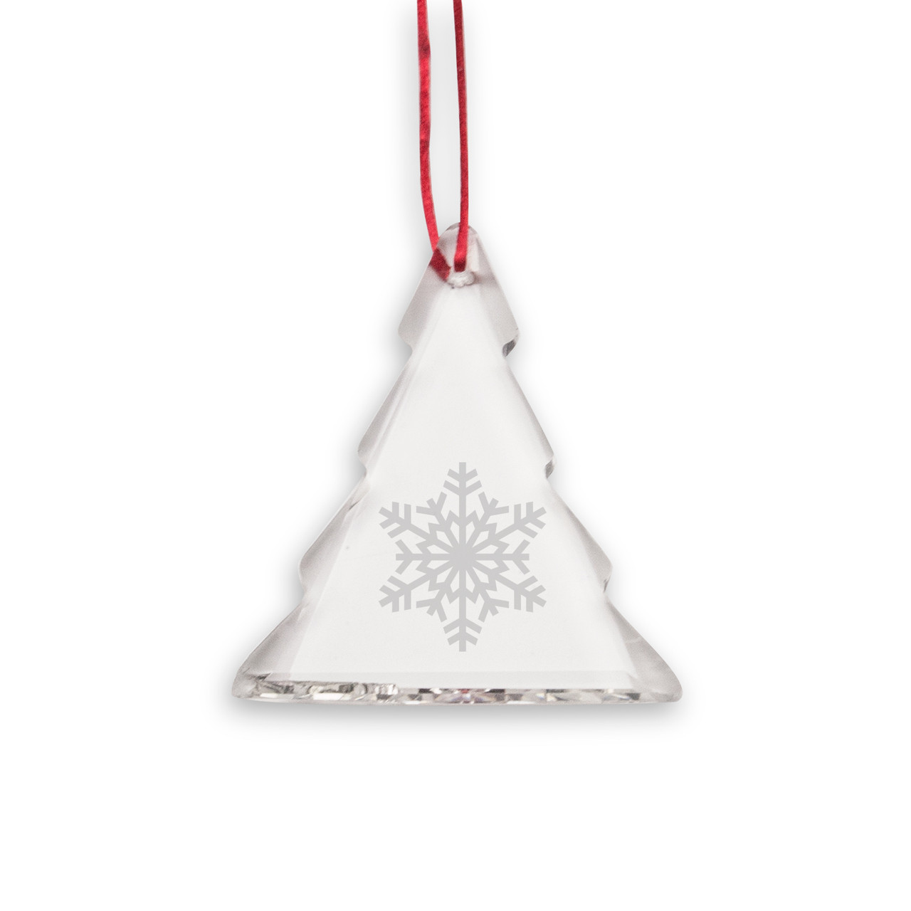 This sophisticated product line uses a deep etch process which provides the most beautiful and enduring decorated glass gifts available today. Designed to be used with limited breakage. Made in the USA. This crystal tree ornament measures 2" x 3.25"H