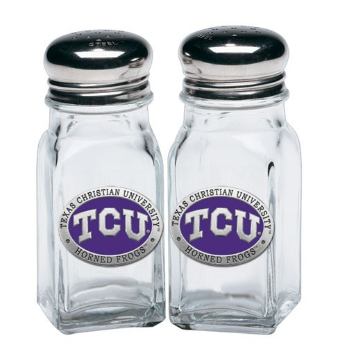 This high quality TCU Horned Frogs Salt and Pepper Shaker Set is officially licensed and features a colored pewter logo of your favorite team. This unique product makes a great gift! Made in the USA.