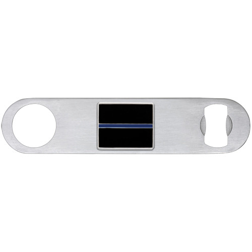 This bottle opener is solid stainless steel with a decorative fine pewter accent casting. The hole opposite the opener is for hanging on a peg.