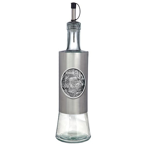 Dress up your table and kitchen with our stylish Stainless Steel Bottle with Pour Spout. Tall and elegant with easy-pour spouts. These stainless steel bottles are embellished with a finely crafted pewter logo. Handmade in the USA a perfect gift item! 20 oz. capacity *Suggested hand wash only