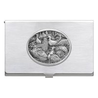 This business card case is constructed of stainless steel featuring a fine pewter decorative casting. The hinged case is perfect for carrying your cards in a neat and impressive manner. Assembled in USA.