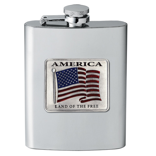 This 8 ounce stainless steel flask is embellished with a fine pewter casting. Assembled in USA.