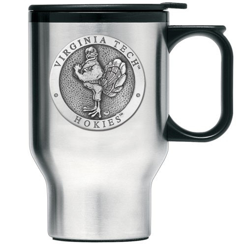 Officially Licensed Virginia Tech Hokies Stainless Steel 14 oz Travel Mug Crafted with a Pewter Logo