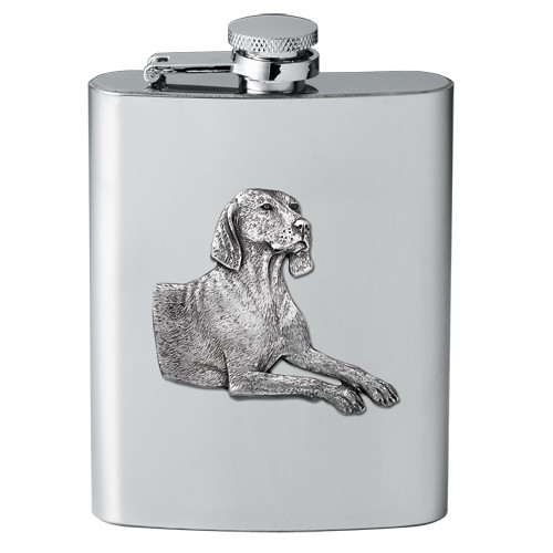 This 8 ounce stainless steel flask is embellished with a fine pewter casting. Assembled in USA.
