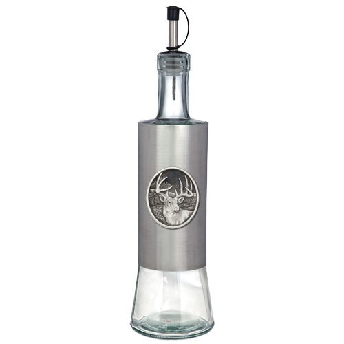 Dress up your table and kitchen with our stylish Stainless Steel Bottle with Pour Spout. Tall and elegant with easy-pour spouts. These stainless steel bottles are embellished with a finely crafted pewter logo. Handmade in the USA a perfect gift item! 20 oz. capacity *Suggested hand wash only