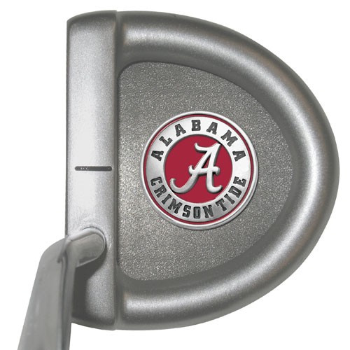 This Alabama Crimson Tide mallet style putter is engineered for perfection. It 's not just pretty to look at: it will also be a valuable tool for regular use. It features a clear polycarbonate view window to highlight and protect the logo. The sole plate and logo are cast in fine pewter, and the pewter logo is also mounted on the head cover. Other attributes include a high tech face utilizing cross-groove texture for immediate over-spin on the ball, a prominent alignment line, and a natural rubber grip with soft contoured edges.