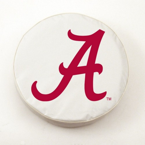 These great Alabama Crimson Tide small white tire covers are made with a heavy gauge vinyl that has an elastic tie down for an easy fit. It is a universal fit tire cover that fits tire diameter up to 28 ? x 8. It's also water resistant, and wipes clean with a damp cloth.