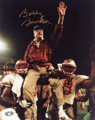 This Florida State Seminoles 8 x 10 Photo has been hand signed by Bobby Bowden. The Photograph will be shipped in a protective rigid 8 x 10 top loader, and will include the photo of Bobby Bowden signing our photos and a Certificate of Authenticity from Creative Sports Ent, Inc with matching holograms on the photo and certificate.