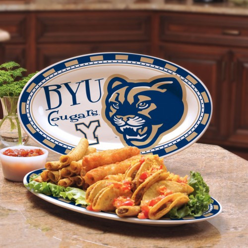 Brigham Young Cougars Ceramic Plate. These hand-painted, ceramic plates are great for game-day fun! Whether it be tailgating at your favorite campus, or watching the games at home, you're sure to enjoy this plate. Features your favorite team logo/mascot.
