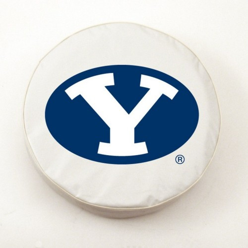 These great Brigham Young Cougars small black tire covers are made with a heavy gauge vinyl that has an elastic tie down for an easy fit. It is a universal fit tire cover that fits tire diameter up to 28 ? x 8. It's also water resistant, and wipes clean with a damp cloth.
