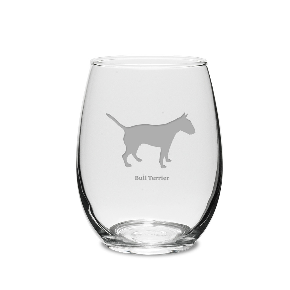 Click the button below to add the Bull Terrier Deep Etched 15 oz Stemless White Wine Glass to your wish list.