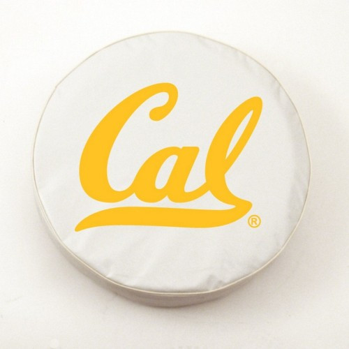 These great California Golden Bears large white tire covers are made with a heavy gauge vinyl that has an elastic tie down for an easy fit. It is a universal fit tire cover that fits tire diameter up to 31"x11". It's also water resistant, and wipes clean with a damp cloth.