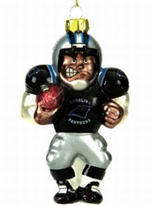 Click the button below to add the Carolina Panthers Blown Glass Football Player Ornament to your wish list.