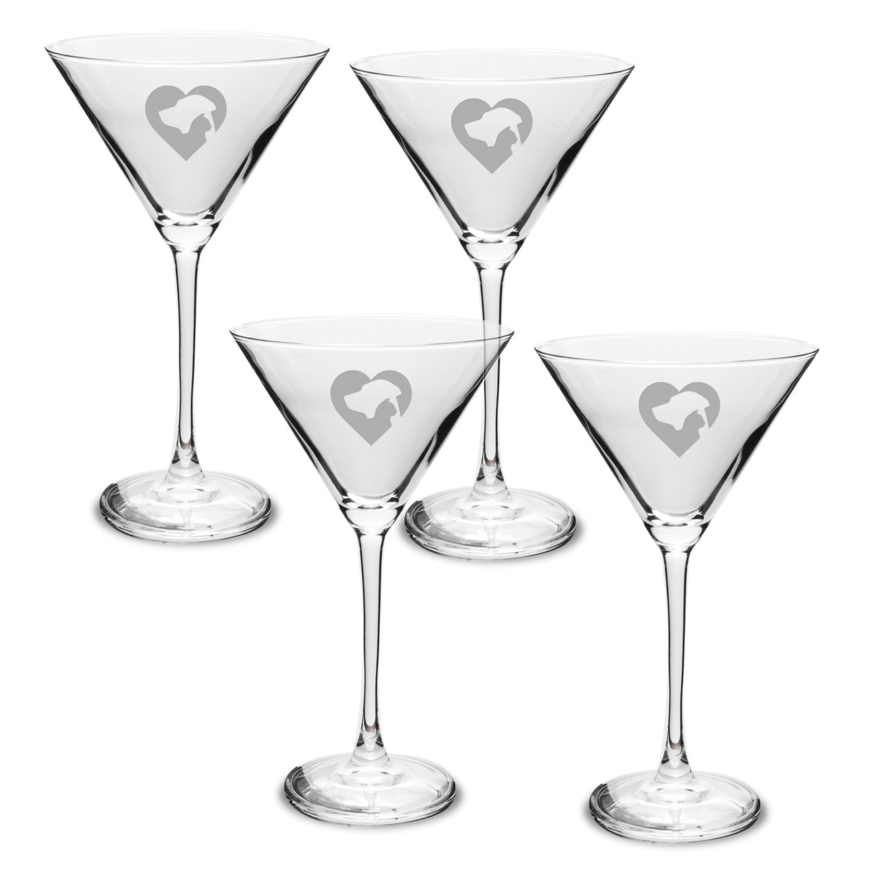 Cat Dog Heart Deep Etched Martini Glass Set of 4