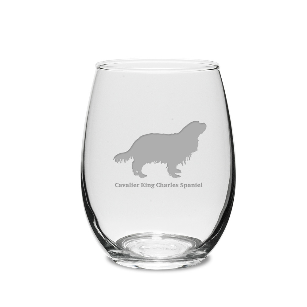 Cavalier King Charles Spaniel Deep Etched 15 oz Stemless White Wine Glass
