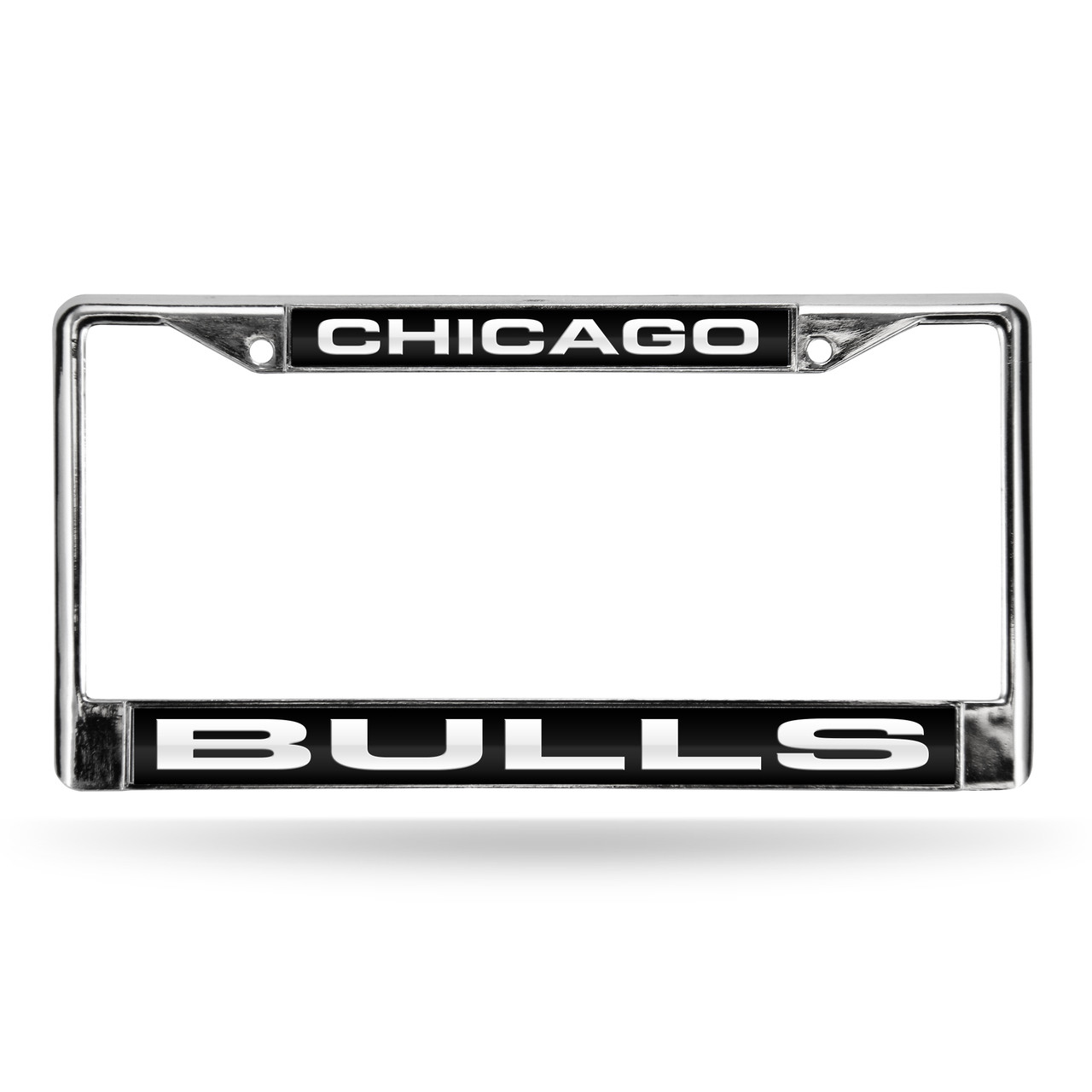 Chicago Bulls LASER Chrome Frame - BLACK BACKGROUND WITH WHITE LETTERS