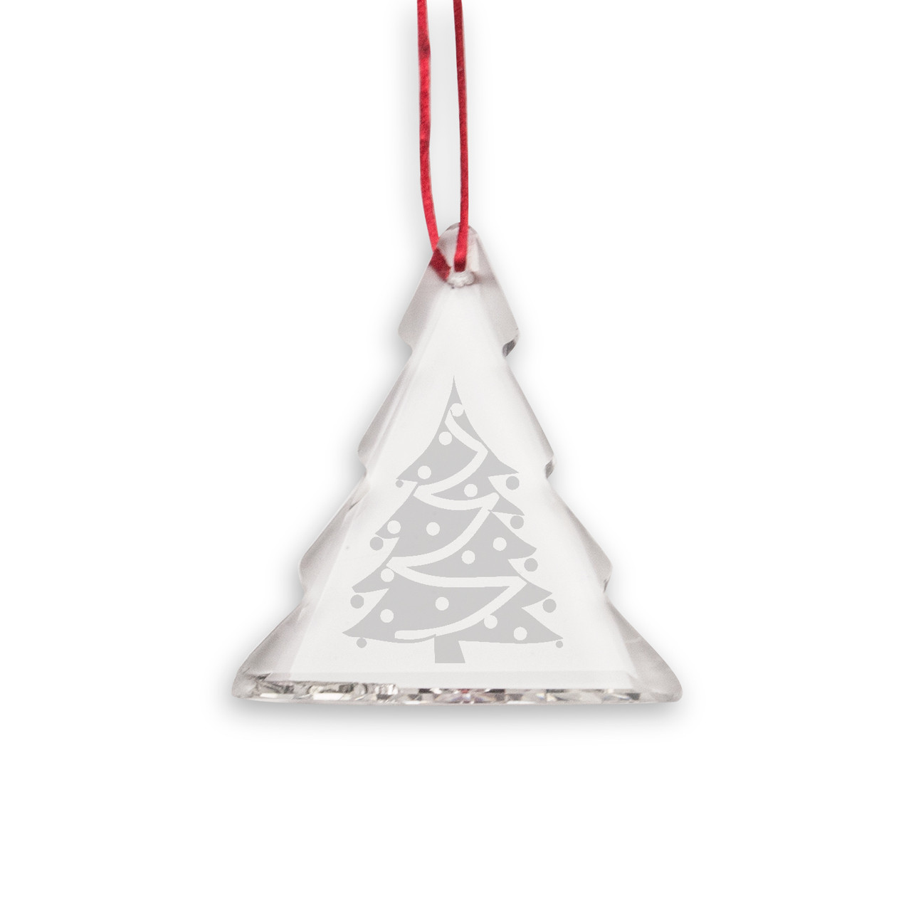 This sophisticated product line uses a deep etch process which provides the most beautiful and enduring decorated glass gifts available today. Designed to be used with limited breakage. Made in the USA. This crystal tree ornament measures 2" x 3.25"H