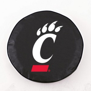 These great Cincinnati Bearcats small black tire covers are made with a heavy gauge vinyl that has an elastic tie down for an easy fit. It is a universal fit tire cover that fits tire diameter up to 28 ? x 8. It's also water resistant, and wipes clean with a damp cloth.