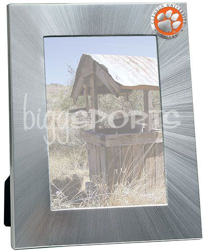 This high quality Clemson Tigers 5x7 Picture Frame is officially licensed and features a colored pewter logo of your favorite team. This unique product makes a great gift! Made in the USA.