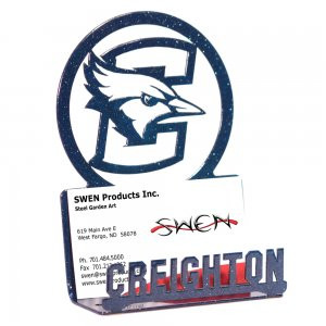 Business Card Holder is constructed out of 16 gauge steel. The entire holder is then painted with a high gloss sparkle powder coat Baked on Paint finish Size is approximately 3.5 inches wide and the height will vary depending on the design. Fits standard size business cards.
