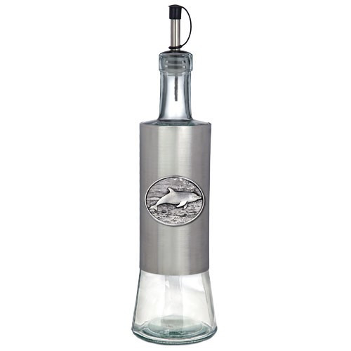 Dress up your table and kitchen with our stylish Stainless Steel Bottle with Pour Spout. Tall and elegant with easy-pour spouts. These stainless steel bottles are embellished with a finely crafted pewter logo. Handmade in the USA a perfect gift item! 20 oz. capacity *Suggested hand wash only