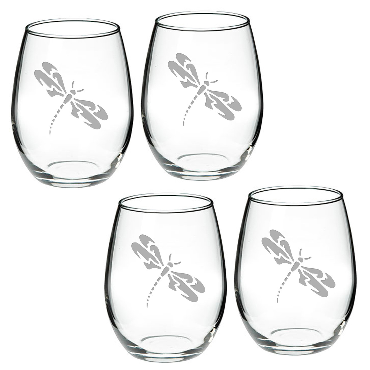 Dragonfly Deep Etched Stemless Red Wine Glass Set of 2