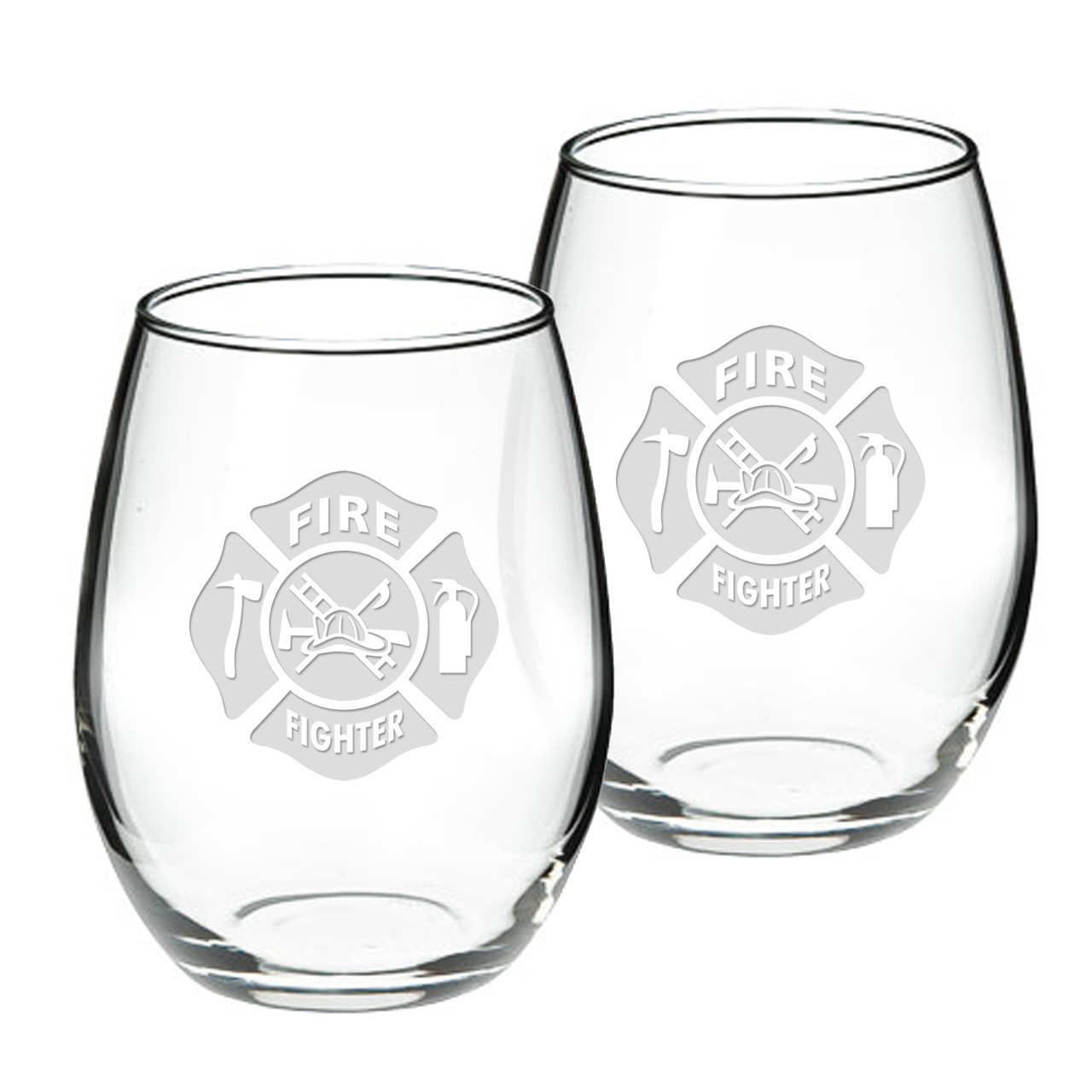 Firefighter 21 oz Stemless Red Wine Glass - Set of 2 This sophisticated product line uses a deep etch process which provides the most beautiful and enduring decorated glass gifts available today. Designed to be used with limited breakage on a daily basis, dishwasher safe. Made in the USA