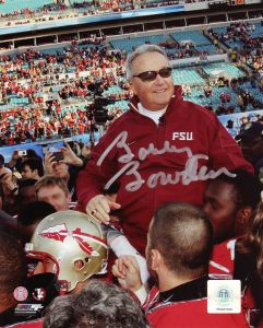 This Florida State Seminoles 8x10 Photo has been hand signed by Bobby Bowden. The Photograph will be shipped in a protective rigid 8x10 top loader, and will include the photo of Bobby Bowden signing our photos and a Certificate of Authenticity from Creative Sports Ent, Inc with matching holograms on the photo and certificate.