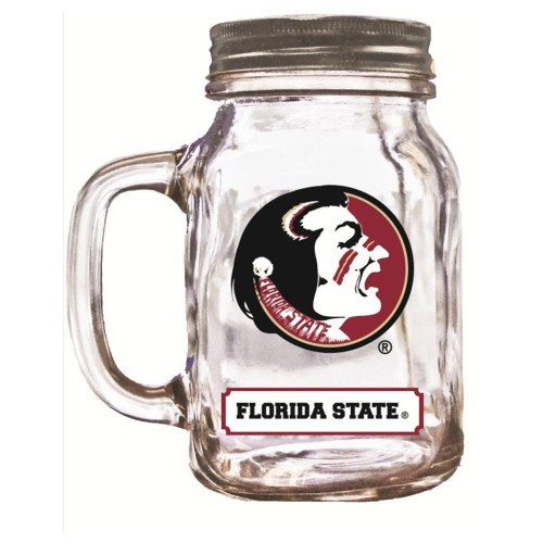 High Quality Glass 16oz Mason Jar, with aluminum screw-on cap. These wide mouth jars are emblazoned with team logos, and come with a great handle. They make fun drinking glasses, and are also great storage and serving containers. Use them during the game for your favorite drinks, and your favorite dips, like salsa! Make your own jam, and can it in these for a great and creative gift. A highly versatile item for the ultimate fan! Made in China.