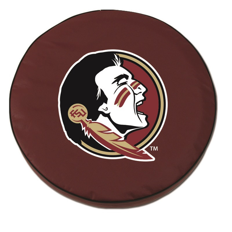 These great Florida State Seminoles small red logo tire covers are made with a heavy gauge vinyl that has an elastic tie down for an easy fit. It is a universal fit tire cover that fits tire diameter up to 28 ? x 8. It's also water resistant, and wipes clean with a damp cloth.