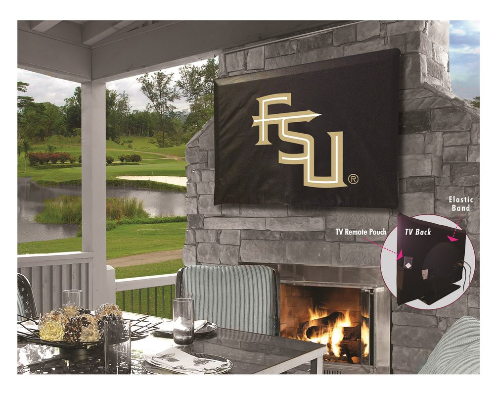 This Florida State (Script) TV Cover is hand-made in the USA using the finest commercial grade vinyl and utilizing a step-by-step screen print process to give you the most detailed logo possible. UV resistant inks are used to ensure exceptional durability to direct sun exposure. Spandex-like material wraps around the back of the TV, keeping moisture out while allowing heat out and helping to prevent overheating. Back opening allows a fit on any wall mount, and bungee allows cover to be cinched down securely. Cover also contains a pocket for remote control storage. This product is Officially Licensed, so you can show your pride while protecting your TV from the elements of nature. Keep your TV protected and support your team with the help of Covers ! Fits TV sizes 50" to 56".