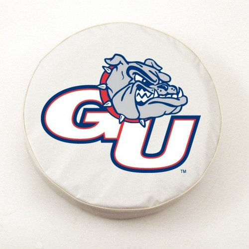 These great Gonzaga Bulldogs small white tire covers are made with a heavy gauge vinyl that has an elastic tie down for an easy fit. It is a universal fit tire cover that fits tire diameter up to 28 ? x 8. It's also water resistant, and wipes clean with a damp cloth.