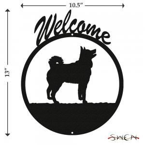 The Welcome Sign is constructed of 18 gauge metal, (Very Strong and Durable!!) Painted with a powder coat paint finish. Approx. dimensions 13 inches high by 10.5 inches wide. 2 small holes drilled into the hanger for easy mounting. This is a GREAT piece of Metal Art that will last for many years!!