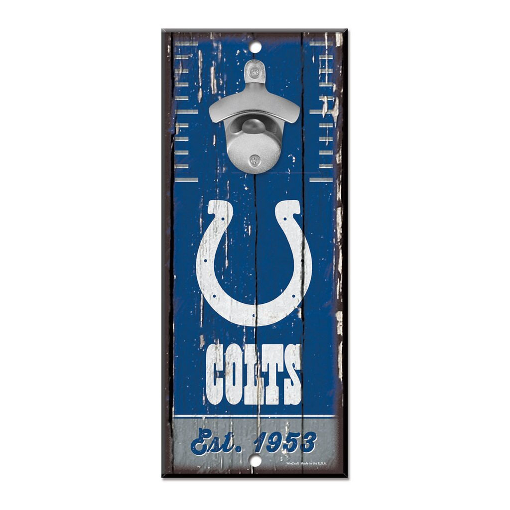 Click the button below to add the Indianapolis Colts Sign Wood 5x11 Bottle Opener to your wish list.