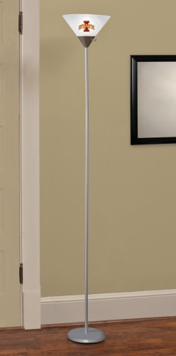 Iowa State Cyclones NCAA Torchiere Floor Lamp. A great way to show your team support with these sleek and functional floor lamps. Your favorite team logo illuminates when lit. Great for apartments, college dorms, or small living areas. Measures 5.5' Tall by 5" Wide.