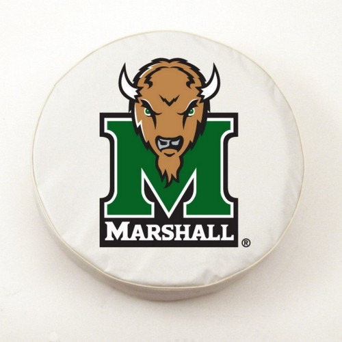 These great Marshall Thundering Herd small white tire covers are made with a heavy gauge vinyl that has an elastic tie down for an easy fit. It is a universal fit tire cover that fits tire diameter up to 28 ? x 8. It's also water resistant, and wipes clean with a damp cloth.