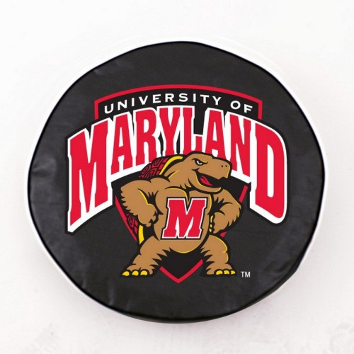 These great Maryland Terrapins small black tire covers are made with a heavy gauge vinyl that has an elastic tie down for an easy fit. It is a universal fit tire cover that fits tire diameter up to 28 ? x 8. It's also water resistant, and wipes clean with a damp cloth.