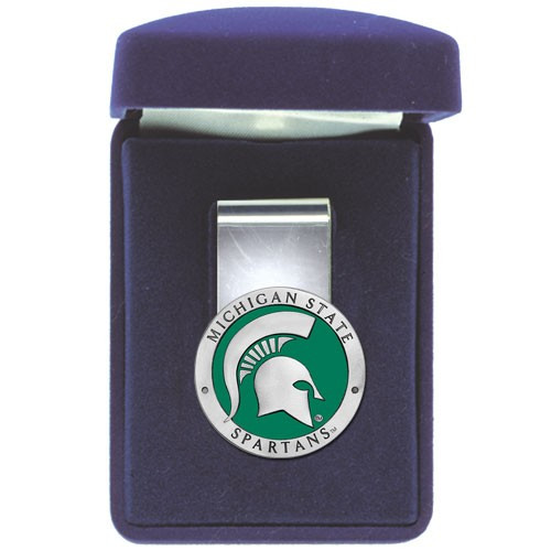 This high quality Michigan State Spartans Money Clip is officially licensed and features a colored pewter logo of your favorite team. This unique product makes a great gift! Made in the USA.