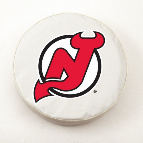 These great New Jersey Devils large white tire covers are made with a heavy gauge vinyl that has an elastic tie down for an easy fit. It is a universal fit tire cover that fits tire diameter up to 31"x11". It's also water resistant, and wipes clean with a damp cloth.