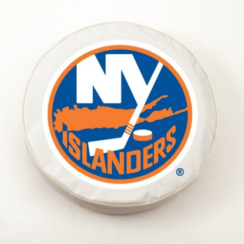 These great New York Islanders small white tire covers are made with a heavy gauge vinyl that has an elastic tie down for an easy fit. It is a universal fit tire cover that fits tire diameter up to 28 ? x 8. It's also water resistant, and wipes clean with a damp cloth.