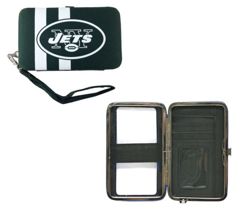 This handy hard case wristlet/purse is perfect for going to a game or bar, when you dont want to carry a big purse around. It can hold your mp3 player or phone with an elastic strap inside. There is a clear plastic cover on the outside so you can use any touch screen smartphone to text or talk, while its in the case. It can also hold your ID, 2 credit cards and money! Show your team spirit while toting your essential stuff! 6" x 3.75" in size.
