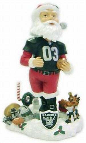These hand crafted, limited edition, highly detailed Santa bobble heads will make a great holiday collectible. Santa is on the field wearing the team jersey while surrounded by cheering reindeer, presents, and a wreath adorned, candy cane colored goalpost. Each Santa is 8" tall, numbered, and made of a sturdy resin material by Forever Collectibles.