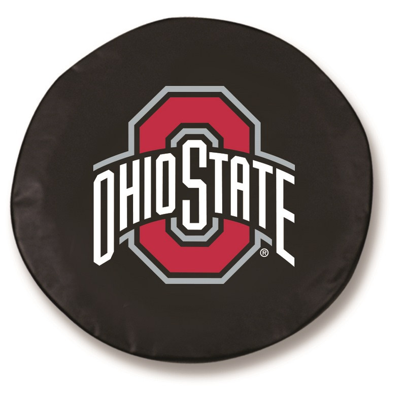 These great Ohio State Buckeyes large black tire covers are made with a heavy gauge vinyl that has an elastic tie down for an easy fit. It is a universal fit tire cover that fits tire diameter up to 31"x11". It's also water resistant, and wipes clean with a damp cloth.