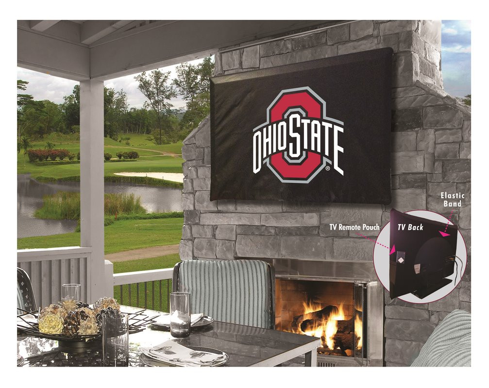 This Ohio State TV Cover is hand-made in the USA using the finest commercial grade vinyl and utilizing a step-by-step screen print process to give you the most detailed logo possible. UV resistant inks are used to ensure exceptional durability to direct sun exposure. Spandex-like material wraps around the back of the TV, keeping moisture out while allowing heat out and helping to prevent overheating. Back opening allows a fit on any wall mount, and bungee allows cover to be cinched down securely. Cover also contains a pocket for remote control storage. This product is Officially Licensed, so you can show your pride while protecting your TV from the elements of nature. Keep your TV protected and support your team with the help of Covers ! Fits TV sizes 30" to 36".