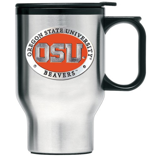 This high-quality Oregon State Beavers Stainless Steel Travel Mug is officially licensed and features a colored pewter logo of your favorite team. This unique product makes a great gift! Made in the USA. 14 oz.