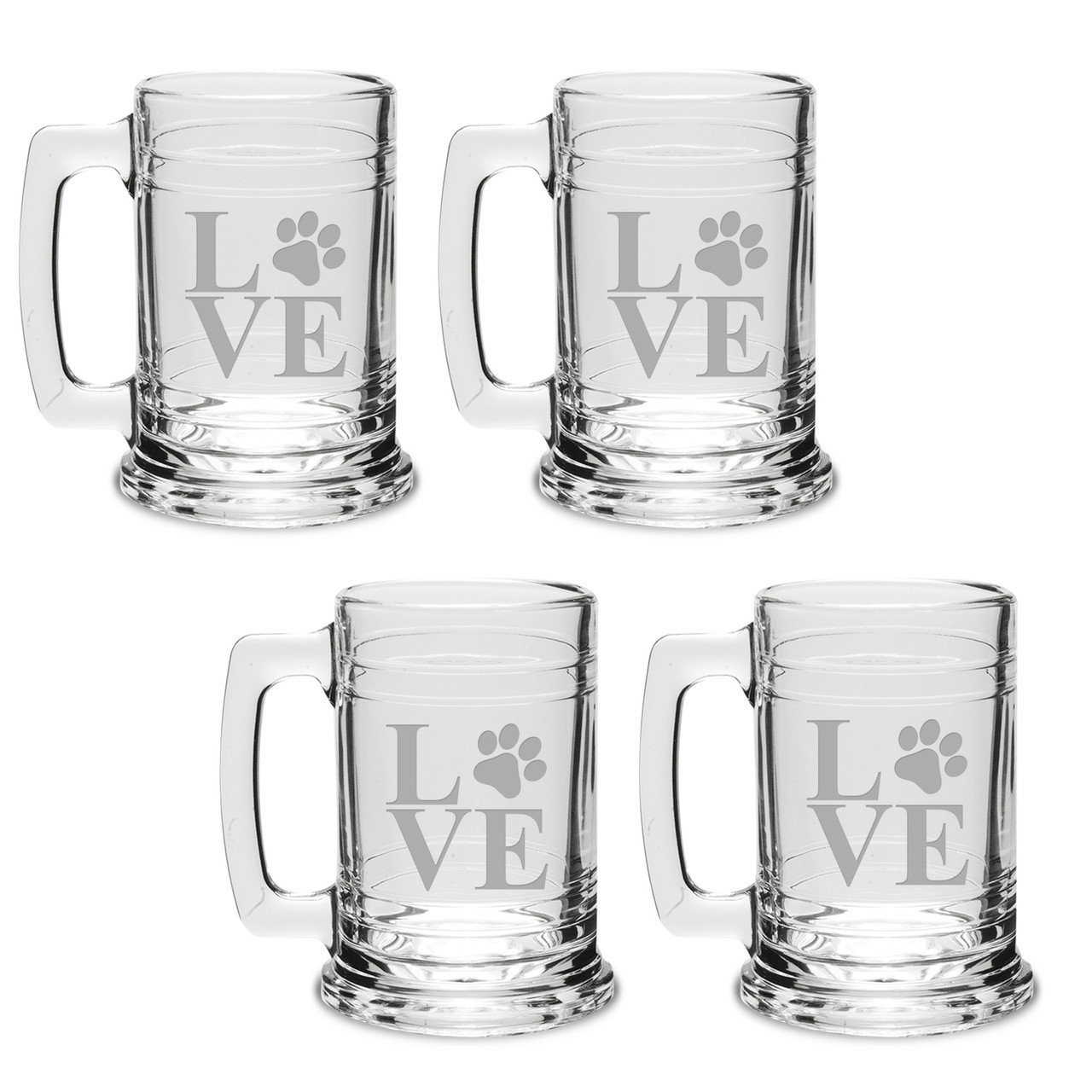 Paw Print Love Deep Etched Glass Tankard Mug Set of 4